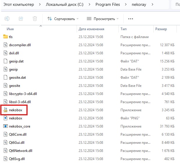 Открывает папку Nekobox и запускаем файл Nekobox.exe